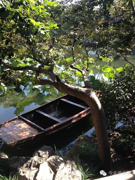 有点偏题,没关系,艺圃的湖里常年飘着的木船,暂且假装也是个家具吧!