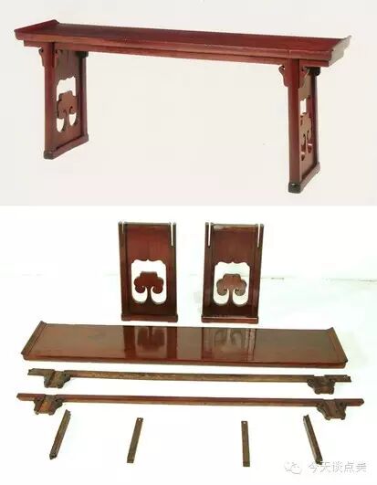 (上图)此乃香案。上表面一口气水平铺展,线条干净轻盈,绝不拖泥带水。垂直向的托子憨厚敦朴。不得不叹,明朝人的审美真如清风明月一般舒爽高洁,同时又返璞归真,归于生活。