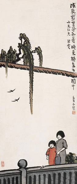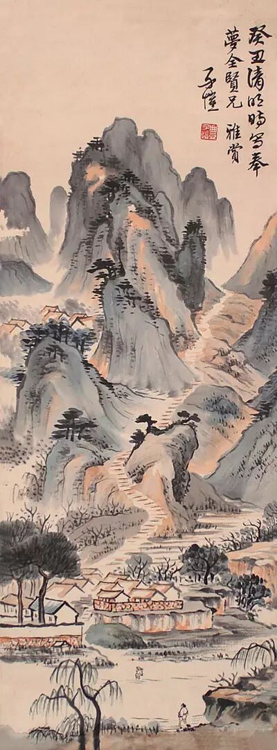 (上图)丰子恺也画过这样的的立轴,颇具古意。不妨与名家们的立轴山水放在一起看看。