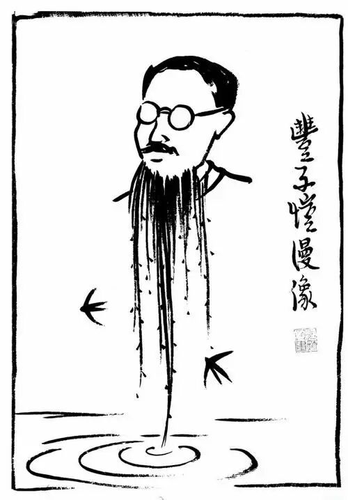 我要开篇讲的这位先生给自己画了这个画自画像:胡须作柳轻点水,燕儿知春自在飞。