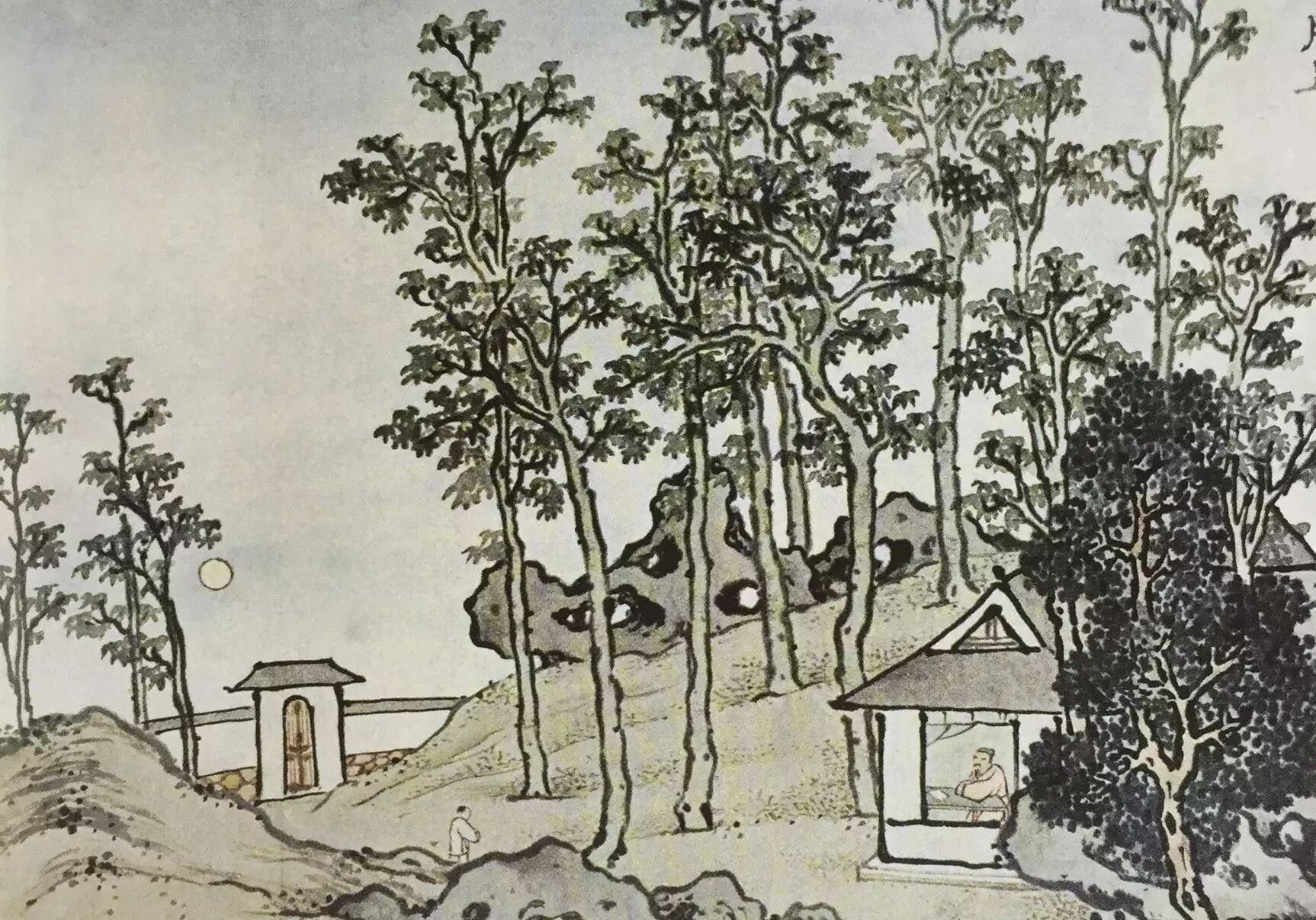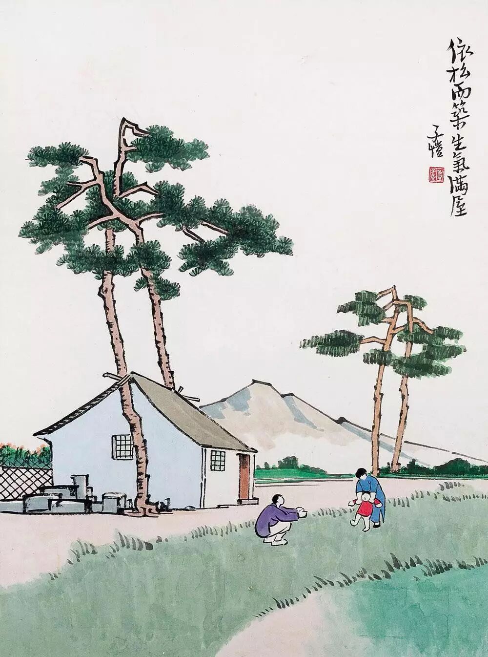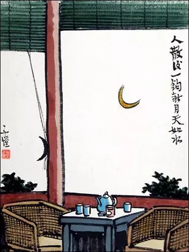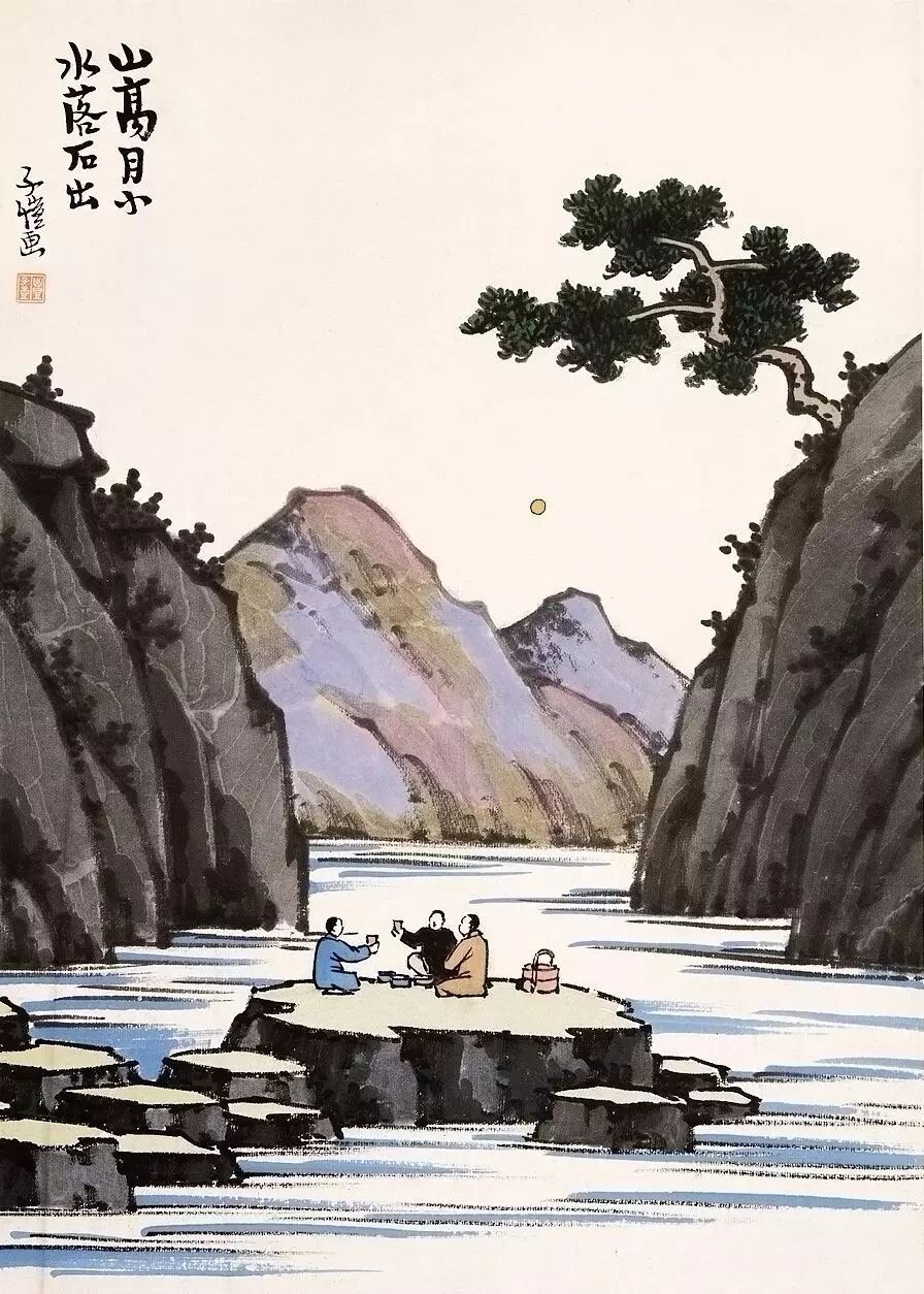 (上图)这幅图,真的太像了!青松明月夜,好意境!只不过如果是丰子恺,小人会画得更带劲吧!