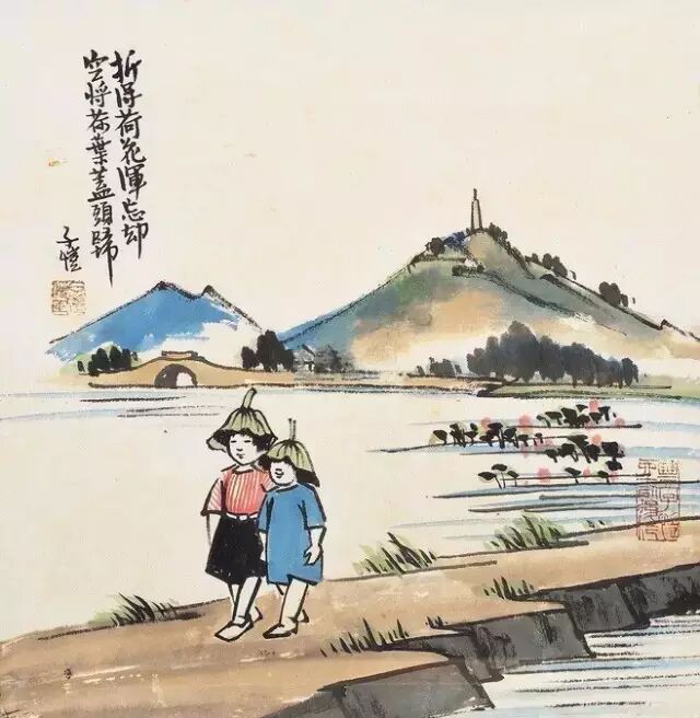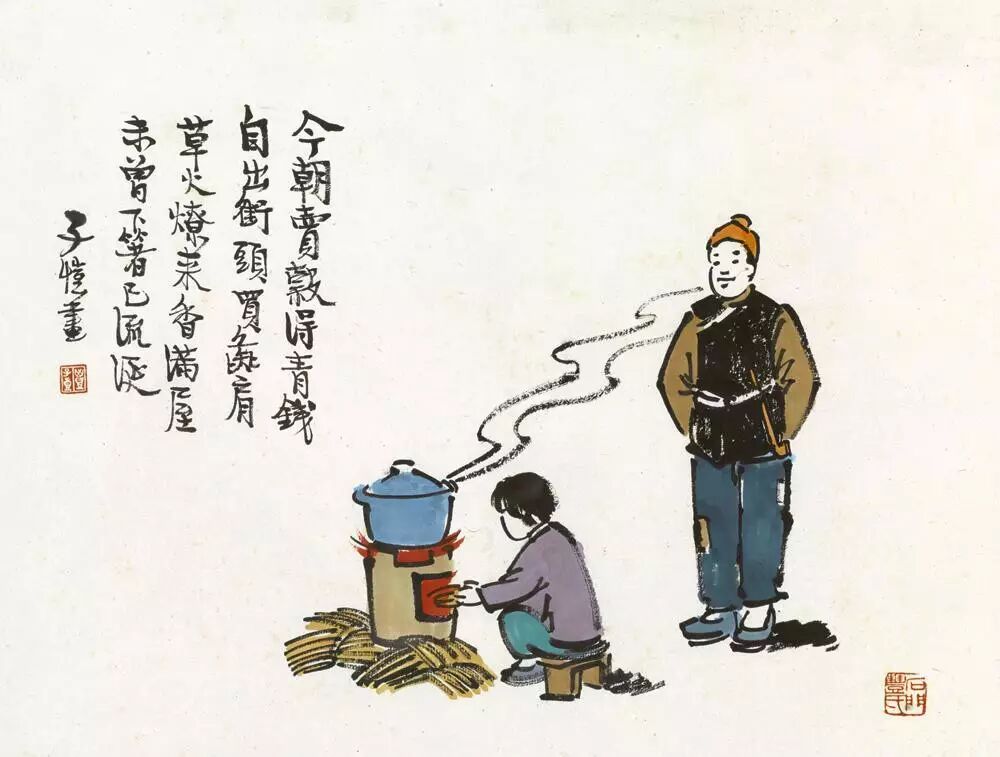 (上图)意境还是不同,丰子恺的话充满亲切的生活气息。这幅画更追求渔人某一个场景中静美画意。