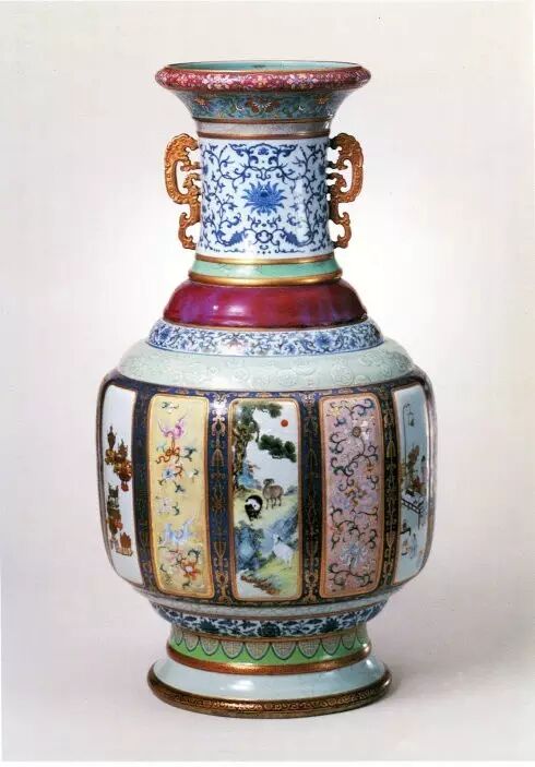 居然还有两位专家,对这个丑到惨不忍睹的瓷器,讲了一个多小时。介绍它工艺精湛,用了15种施釉方法,如:色地珐琅彩、松石地粉彩、仿哥釉、金釉、青花、松石釉、、窑变釉、斗彩、冬青釉暗刻、祭兰描金、开光绘粉彩、仿官釉、绿釉、珊瑚红釉、仿汝釉、紫金釉等。