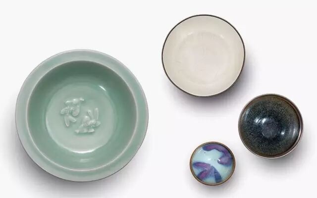 两宋时期,窑业大发展大繁荣,瓷器也走向了新的格局。每一个朝代的瓷器都有自己的气质,下面这张图集合了宋代四种瓷:青瓷,白瓷,钧瓷,黑瓷。每一件都静美如画。大家感受一下: